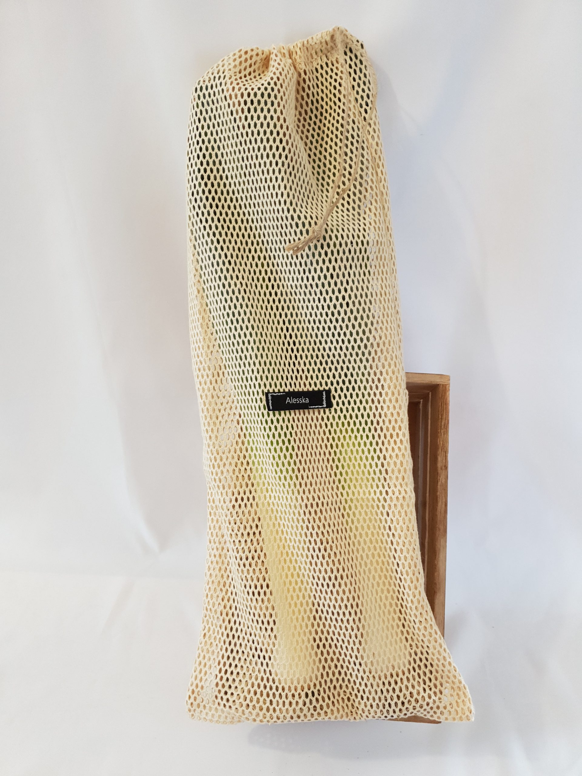 Composition : (L 56 cm X l 23 cm) 100 % coton Bio certifié Oeko-tex, ficelle en jute ou en coton pour la tirette.