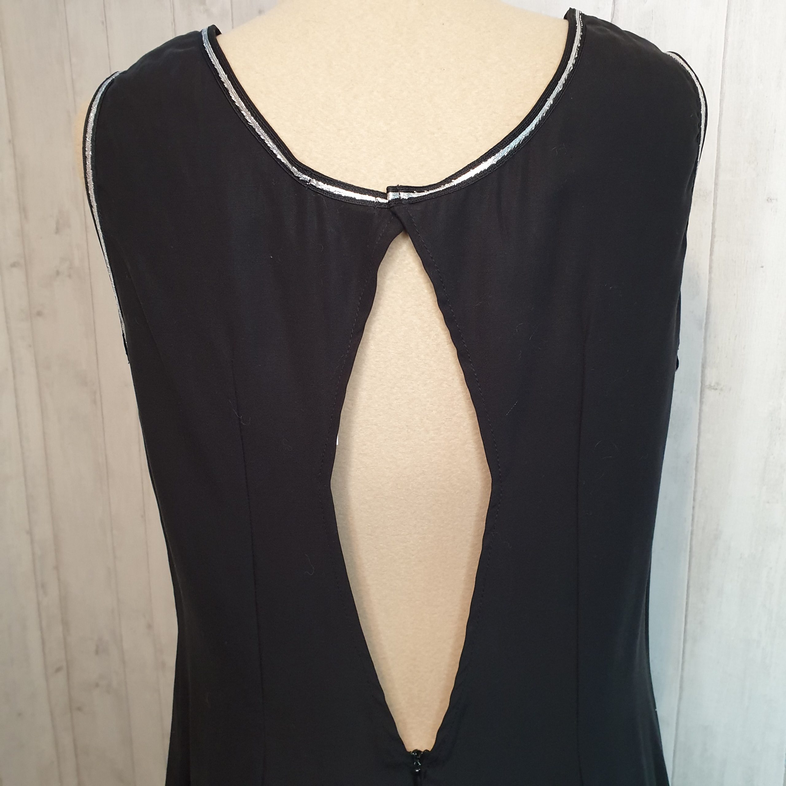 Robe noire 100 % Lyocell ornée d’un galon argenté.