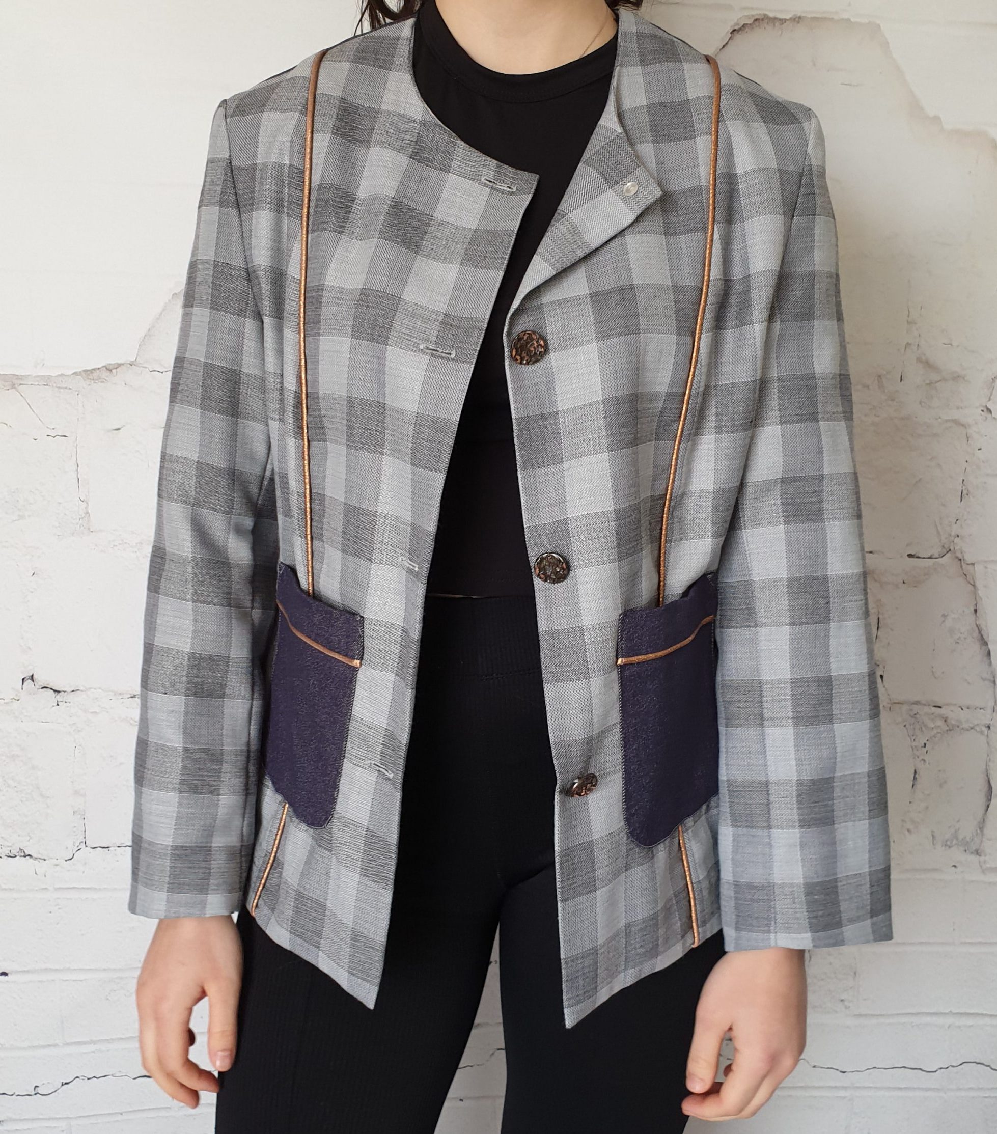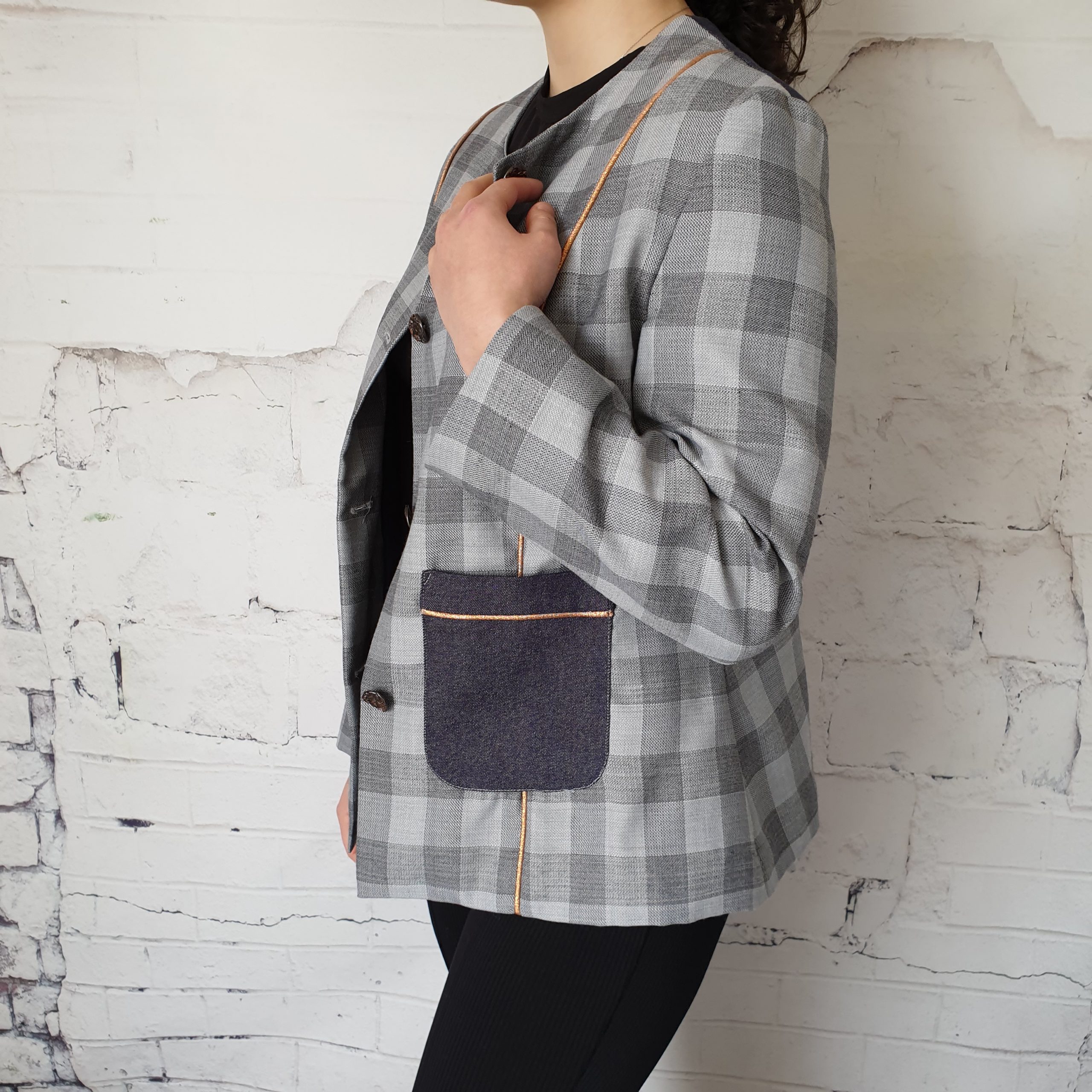 Composition : boutons en métal de couleur bronze, les poches sont en jean’s ainsi que l’empiècement dos. L’extérieur est un mélange de coton et de laine et la doublure est en polyester.
